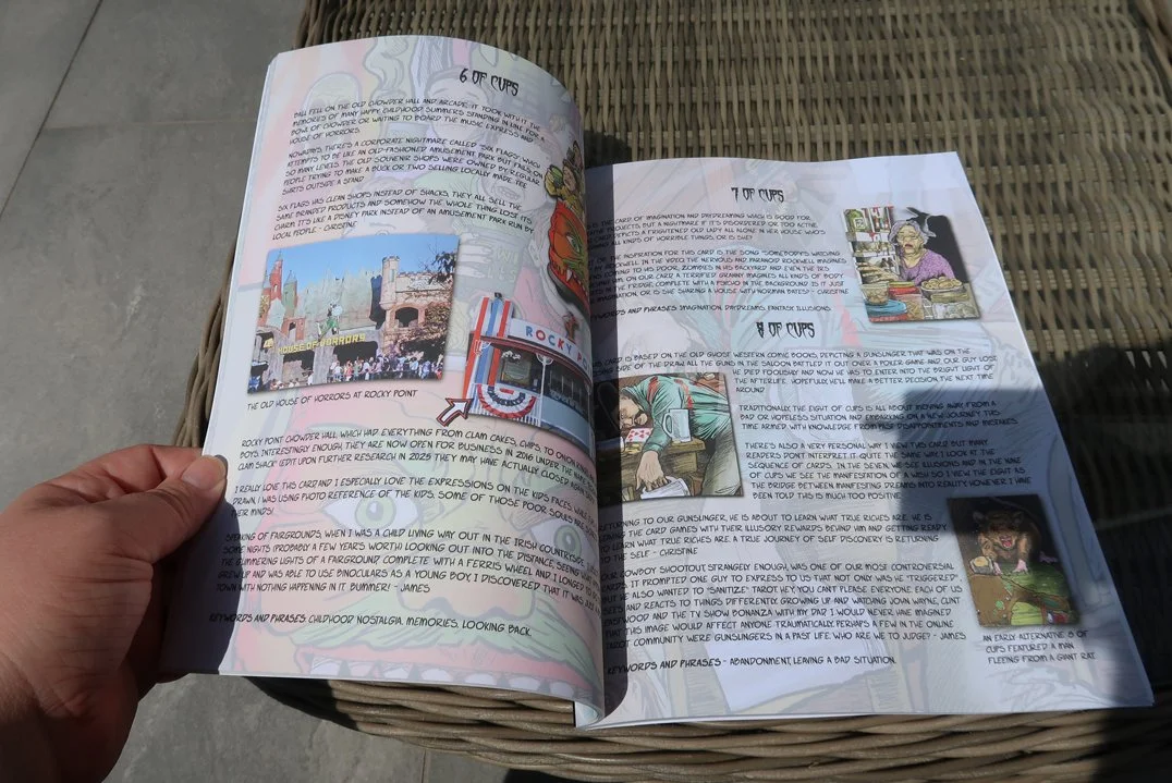 Another addition to the book, which the original did not have, is a complete list of every card we’ve ever printed for the deck. I was a bit reluctant to add the complete published list of all the cards we’ve ever printed, because a good half of those cards are not actually in the 2024 edition of the deck; nor are they currently available. At the same time, throughout the book, some of these are briefly mentioned as part of the TTT timeline, and so I felt that at least for educational, or more importantly, narrative purposes, it would probably be a good idea to add them.