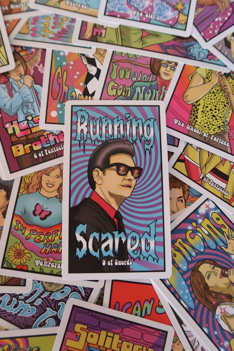 The Gloria Gaynor pouch from the Melodic Moods Tarot features beautiful velvet textured fabric with beaded drawstrings to secure your Music themed deck.